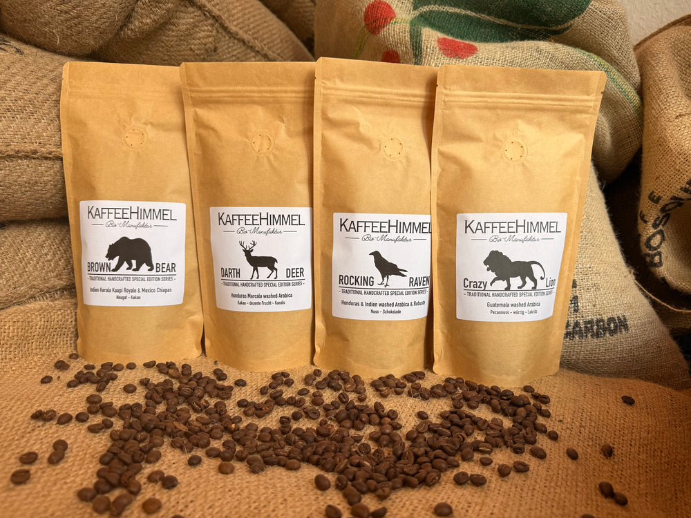 Dieses Set umfasst 5 handverlesene Kaffees á 100g aus unserem Sortiment um den richtigen Geschmack zu finden und sich durch zu testen.