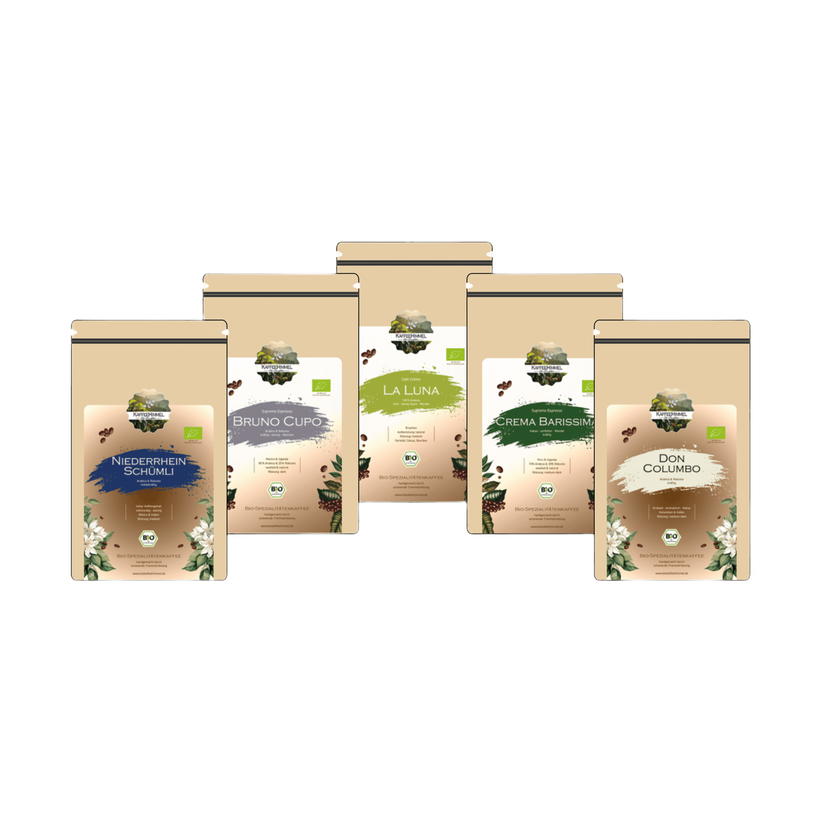 Dieses Set umfasst 5 handverlesene Kaffees á 100g aus unserem Sortiment um den richtigen Geschmack zu finden und sich durch zu testen.